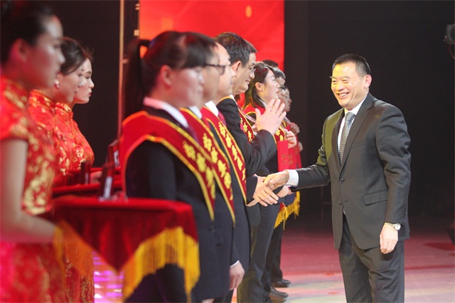 ▲集团董事长赵焕臣为十大营销标兵颁发纯金奖章和荣誉证书