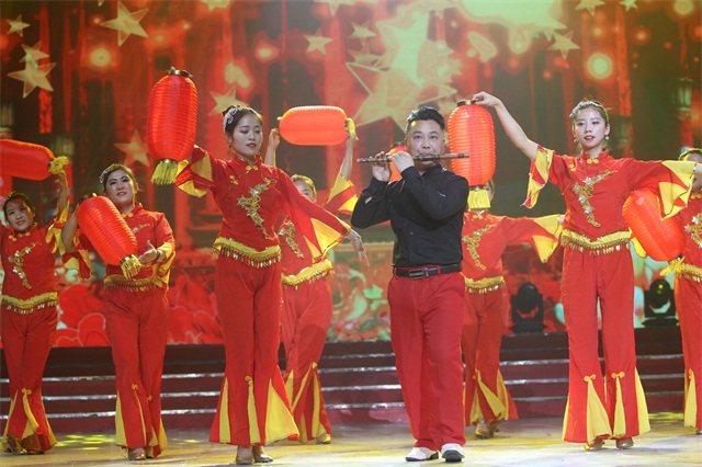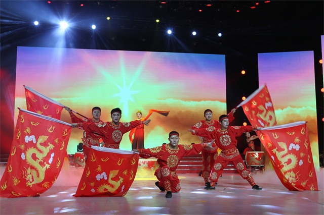 ▲喜庆热闹的功夫旗舞《旗开得胜》拉开了联欢会的序幕