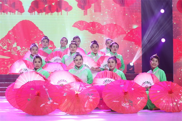 ▲舞蹈《花伞蝶扇》 (yl6809永利皇宫纺织新宇公司)